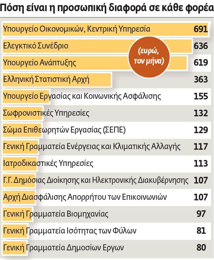 Σύμφωνα με τα διαθέσιμα στοιχεία, καταβάλλονται ετησίως περίπου 200 εκ. ευρώ ως προσωπική διαφορά σε 66.000 δημοσίους υπαλλήλους.