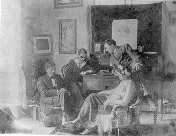 1912. Κράσι Κρήτης. Από αριστερά: Κώστας Βάρναλης, Χαρίλαος Στεφανίδης, Νίκος Καζαντζάκης, Γαλάτεια Καζαντζάκη
