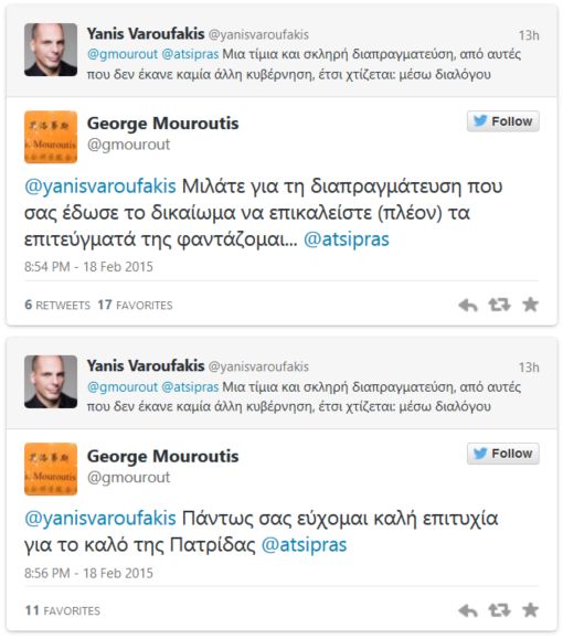 Σκληρή αντιπαράθεση ξέσπασε στην «αρένα» του twitter ανάμεσα στον Γιάννη Βαρουφάκη και τους υπουργούς της προηγούμενης κυβέρνησης, Γιώργο Μουρούτη και Γιάννη Βαρουφάκη.