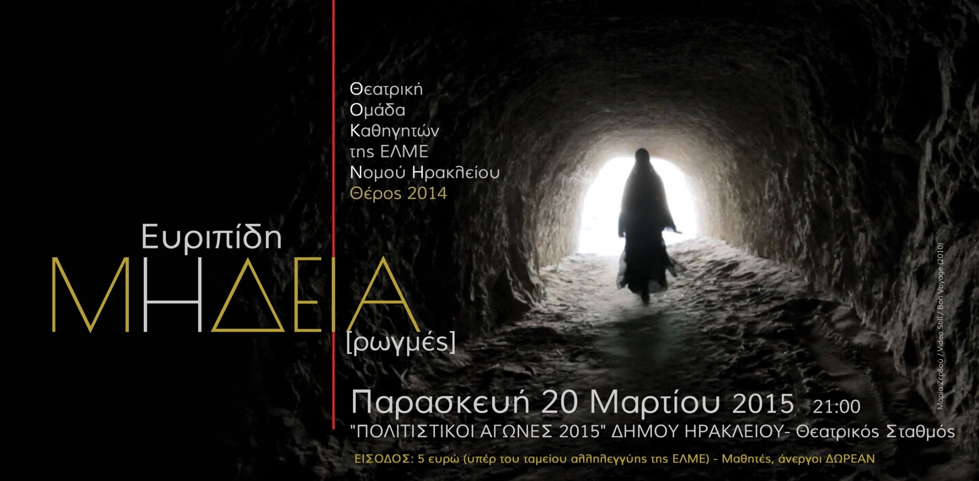 Η παράσταση είναι το ‘αποτέλεσμα’ της εργαστηριακής και ερευνητικής δοκιμής - σπουδής της ομάδας πάνω στην ξεχωριστή μετάφραση - απόδοση της ΜΗΔΕΙΑΣ από τον Γιώργο Χειμωνά. Με λιτή (σχεδόν αφαιρετική) σκηνική απεικόνιση, αναδεικνύεται κυρίως ο λόγος του αρχαίου ποιητή και το διαχρονικό «πρόσωπο-προσωπείο» της Μήδειας.