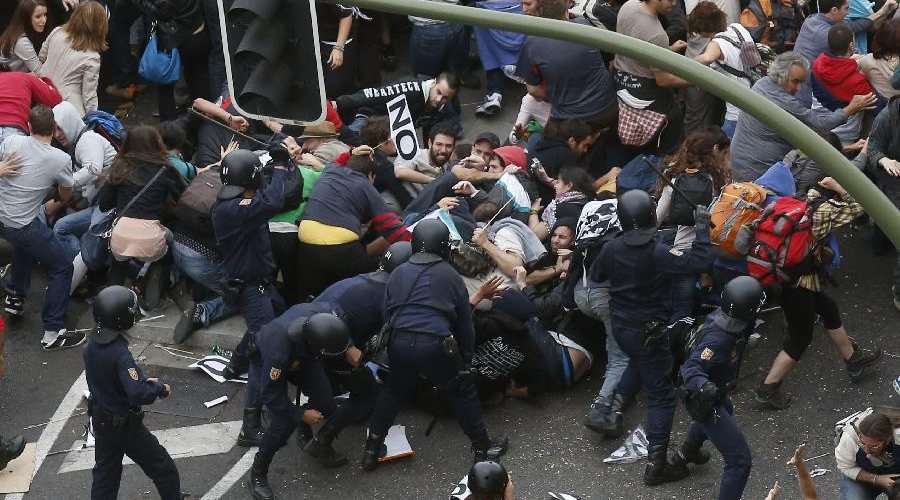Το Κοινοβούλιο της Μαδρίτης πολιορκείται από τους διαδηλωτές και γίνονται σκληρές συγκρούσεις με την αστυνομία. Οι διαδηλωτές προσπαθούν να ρίξουν κάτω τους σιδερένιους φράκτες που προφυλάσσουν το Κοινοβούλιο από το οργισμένο πλήθος