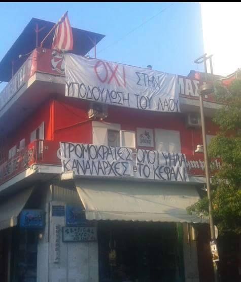 Έχουμε αλιεύσει μόνο έναν σύνδεσμο από την Πάτρα του Ολυμπιακού που κρέμασε πανό για το ΟΧΙ