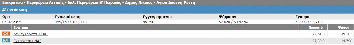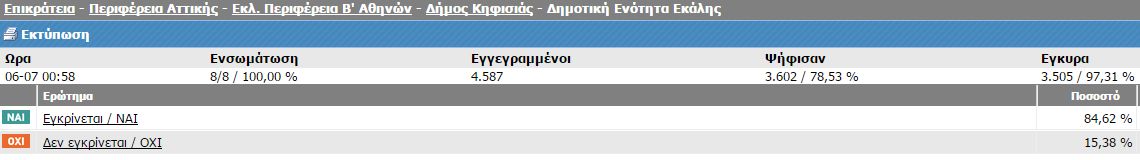 Κοιτάζοντας σήμερα τα στατιστικά στο Υπουργείο Εσωτερικών, θυμήθηκα τον Μιχάλη. Το ΝΑΙ στη Νίκαια είχε 27% ενώ στην Εκάλη 78,5%.