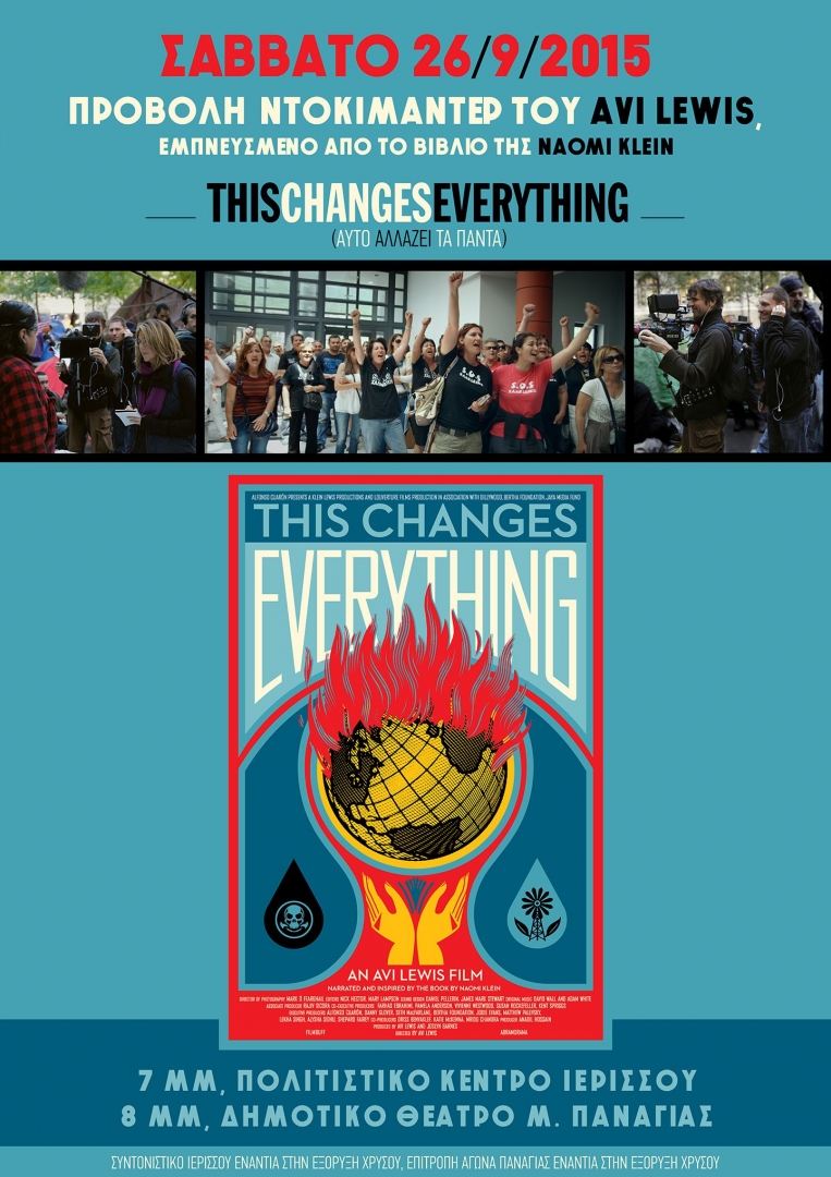 Σε σκηνοθεσία του Άβι Λιούις, κι εμπνευσμένη από το διεθνές μη-μυθοπλαστικό μπεστ-σέλερ της Ναόμι Κλάιν This Changes Everything, η ταινία παρουσιάζει επτά δυνατά πορτραίτα τοπικών κοινωνιών στην πρώτη γραμμή του αγώνα, από τη Μοντάνα των ΗΠΑ στην Αλμπέρτα του Καναδά, από την ακτή της Νότιας Ινδίας στο Πεκίνο και πιο πέρα.