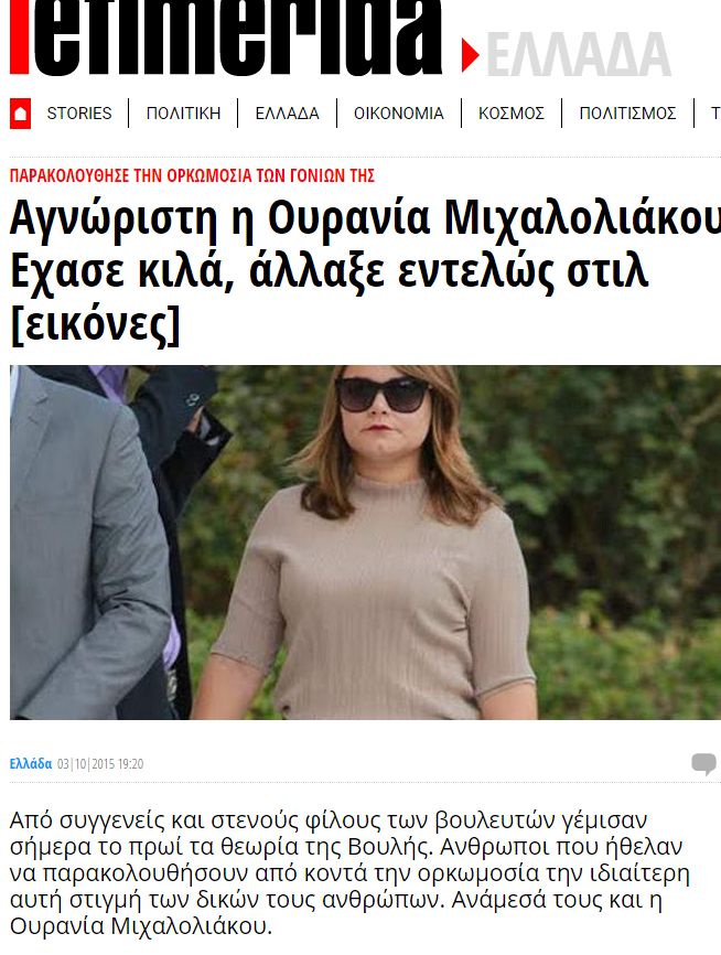 «Μεγαλύτερη εντύπωση προκάλεσε ασφαλώς η εμφανώς αδυνατισμένη σιλουέτα της» γράφει η Athens Voice, το νεοφιλελεύθερο free press του «Μένουμε Ευρώπη» και, για του λόγου το αληθές, μας ζητάει να κάνουμε «μια τυχαία σύγκριση με στιγμιότυπο του 2014» και η οποία «πιστοποιεί το οφθαλμοφανές».