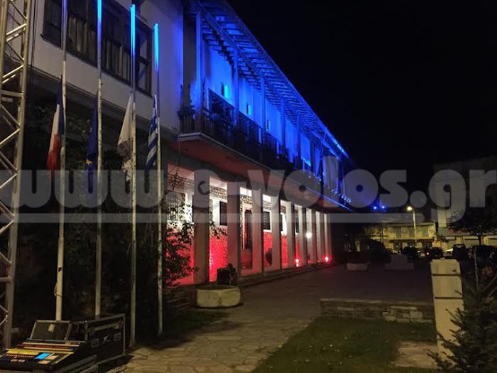 Ο δήμαρχος του Βόλου, Αχιλλέας Μπέος φωταγώγησε στο δημαρχείο της πόλης, όχι στα χρώματα της Γαλλίας αλλά στα χρώματα της σημαίας της πρώην Γιουγκοσλαβίας