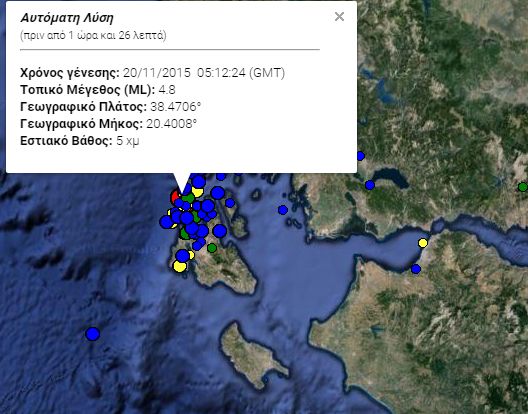 Πριν λίγο σημειώθηκε σεισμική δόνηση μεγέθους 4,8 Ρίχτερ βορειοδυτικά της Ιθάκης