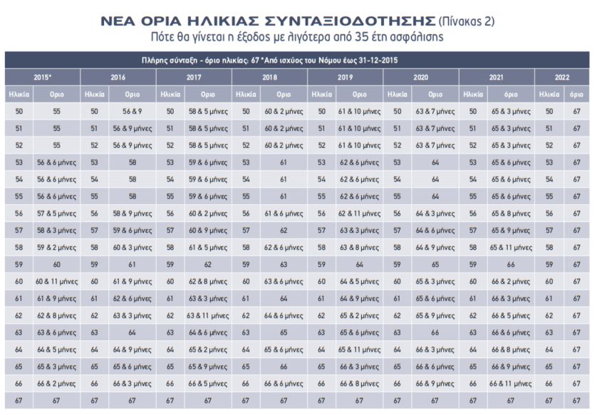 ΠΛΗΡΟΦΟΡΙΑΚΑ: Όσοι θεμελίωσαν συνταξιοδοτικό δικαίωμα μέχρι 31-12-2010 η μείωση είναι 4,5% ετησίως και το όριο ηλικίας το 55ο έτος και το 60ο έτος για γυναίκες και άνδρες αντίστοιχα. Όσοι θεμελίωσαν συνταξιοδοτικό δικαίωμα από 1-1-2011 και μετά η μείωση είναι 6% ετησίως και το όριο ηλικίας το 56ο έτος για άνδρες και γυναίκες που θεμελίωσαν συνταξιοδοτικό δικαίωμα το 2011 και το 58ο έτος γι’ αυτούς που θεμελίωσαν συνταξιοδοτικό δικαίωμα το 2012.