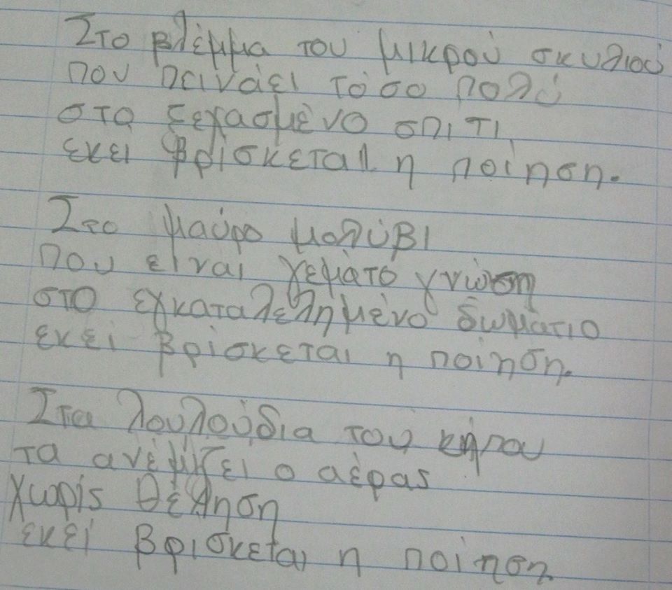 9χρονη μαθήτρια Τετάρτης Δημοτικού στο Ηράκλειο Κρήτης, απαντά γραπτώς στο ερώτημα «Πού βρίσκεται η ποίηση;»