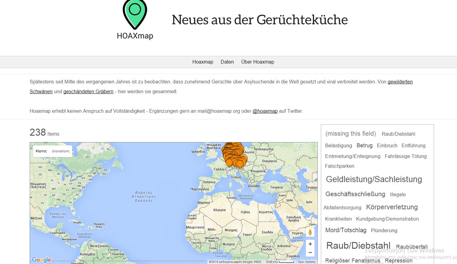 Περιέχει επίσης συνδέσμους με ειδήσεις που επιβεβαιώνουν πως το περιστατικό έχει κριθεί αναληθές. Σύμφωνα με την εφαρμογή, μέχρι στιγμής έχουν καταγραφεί 187 τέτοια περιστατικά.