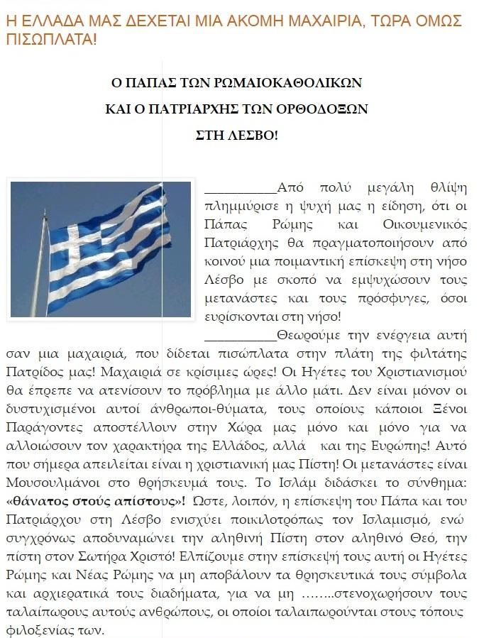 Ένα ακόμα παραλήρημα του μητροπολίτη Καλαβρύτων και Αιγιαλείας, Αμβρόσιου απέναντι στον Πάπα Φραγκίσκο αλλά και τον Οικουμενικό Πατριάρχη Βαρθολομαίο.