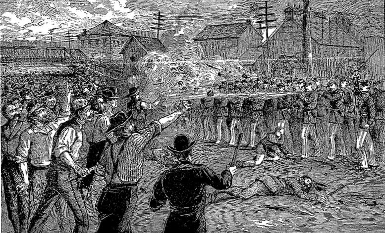 Οι εφημερίδες και οι βιομήχανοι διέδιδαν ότι η πρώτη του Μάη ήταν η ημερομηνία που θα γινόταν μια κομμουνιστική εργατική εξέγερση, σύμφωνα με το μοντέλο της Παρισινής Κομμούνας (…) οι μεγαλοβιομήχανοι του Σικάγου, ακόμα και σε ομαλές εποχές, διακρίνονταν για τη νεξαιρετική σκληρότητά τους. Η αστυνομία (…) “χρησιμοποιούνταν από καιρό σαν ιδιωτική δύναμη στην υπηρεσία της εργοδοσίας (…)