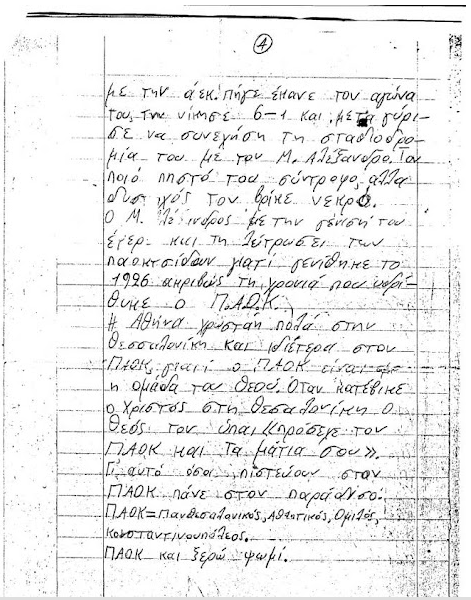 Φέτος ξεσκίσαμε τον ολυμπιακό με 4-1. Το τέσσερα είναι συμβολικό νούμερο. Τέσσερα ονομάζεται η κερκίδα του ΠΑΟΚ. Έγιναν τα επισόδια με τους αστυνομικούς αλλά η νίκη δεν αλλάζει. Και στο Αλκαζάρ χάσαμε από τη Λάρισα γιατί έγειναν φασαρίες, χτυπήθηκαν οι παίκτες και χάσαμε τον αγώνα ενώ προτού τις φασαρίες κερδούσαμε 1-0. Στο τέλος του αγώνα όμως έφαγαν ξύλο η λαρισινή και μας τιμώρησαν.