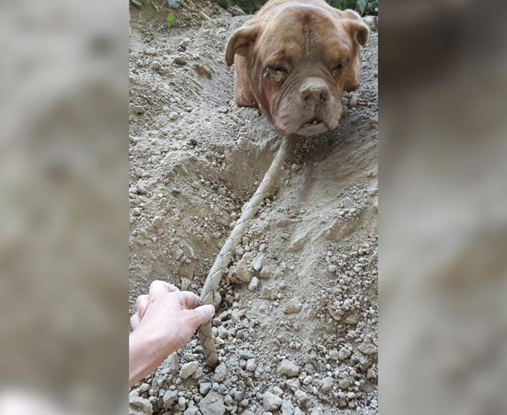 Ο σκύλος είχε θαφτεί από τον σαδιστή ιδιοκτήτη τουο οποίος συνελήφθη και κατηγορείται για κακοποίηση ζώων.