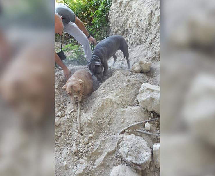 Το σκυλί όχι μόνο είχε θαφτεί αλλά είχε δεθεί με σκοινί. Ο Pedro και ο σκύλος του άρχισαν να σκάβουν για να βγάλουν το γαλλικό μαστίφ που ονομάζεται Αθηνά. Το άλλο άκρο του σχοινιού της ήταν δεμένο με ένα γεμάτο σάκο χαλίκια που είχε θαφτεί.