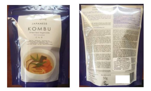 Πρόκειται για τo προϊόν "Clearspring - Japanese Kombu - Dried sea vegetable - wild harvested" προέλευσης Ιαπωνίας, σε συσκευασία των 50g, που έχει αριθμό γραμμοκώδικα 5021554002291 και ημερομηνία ανάλωσης έως 01/07/2018. Τo εν λόγω προϊόν συσκευάζεται από την Βρετανική εταιρεία "Clearspring Ltd", διακινήθηκε στην Ελλάδα από την εταιρεία "Green Bay & Company Ltd" και διατέθηκε στο καταναλωτικό κοινό από την εταιρεία "Ζωή Μονοπρόσωπη ΕΠΕ - Παντοπωλείο Θεσσαλονίκης" (Κομνηνών 12, ΤΚ 54624, Θεσσαλονίκη) σε συνολική ποσότητα 10 τεμαχίων.