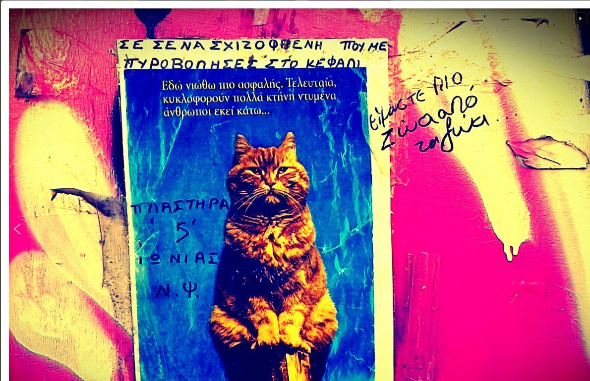 αυτά γράφει η αφίσα και μας κάνει να αναρωτηθούμε πως γίνεται να βρέθηκε "άνθρωπος" που να πυροβόλησε αυτό το γατί.