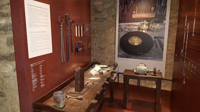 Οι εκθεσιακοί χώροι αναπτύσσονται στα δύο επίπεδα του προμαχώνα. Στο πρώτο επίπεδο ξετυλίγεται το βασικό μέρος της έκθεσης, το οποίο αναφέρεται στην ιστορία και την τεχνολογία της αργυροτεχνίας στην Ήπειρο. Ο επισκέπτης με την βοήθεια ποικίλων εποπτικών μέσων ανακαλύπτει παραδοσιακές τεχνικές, μαθαίνει για τα στάδια τους και για το τελικό προιόν.