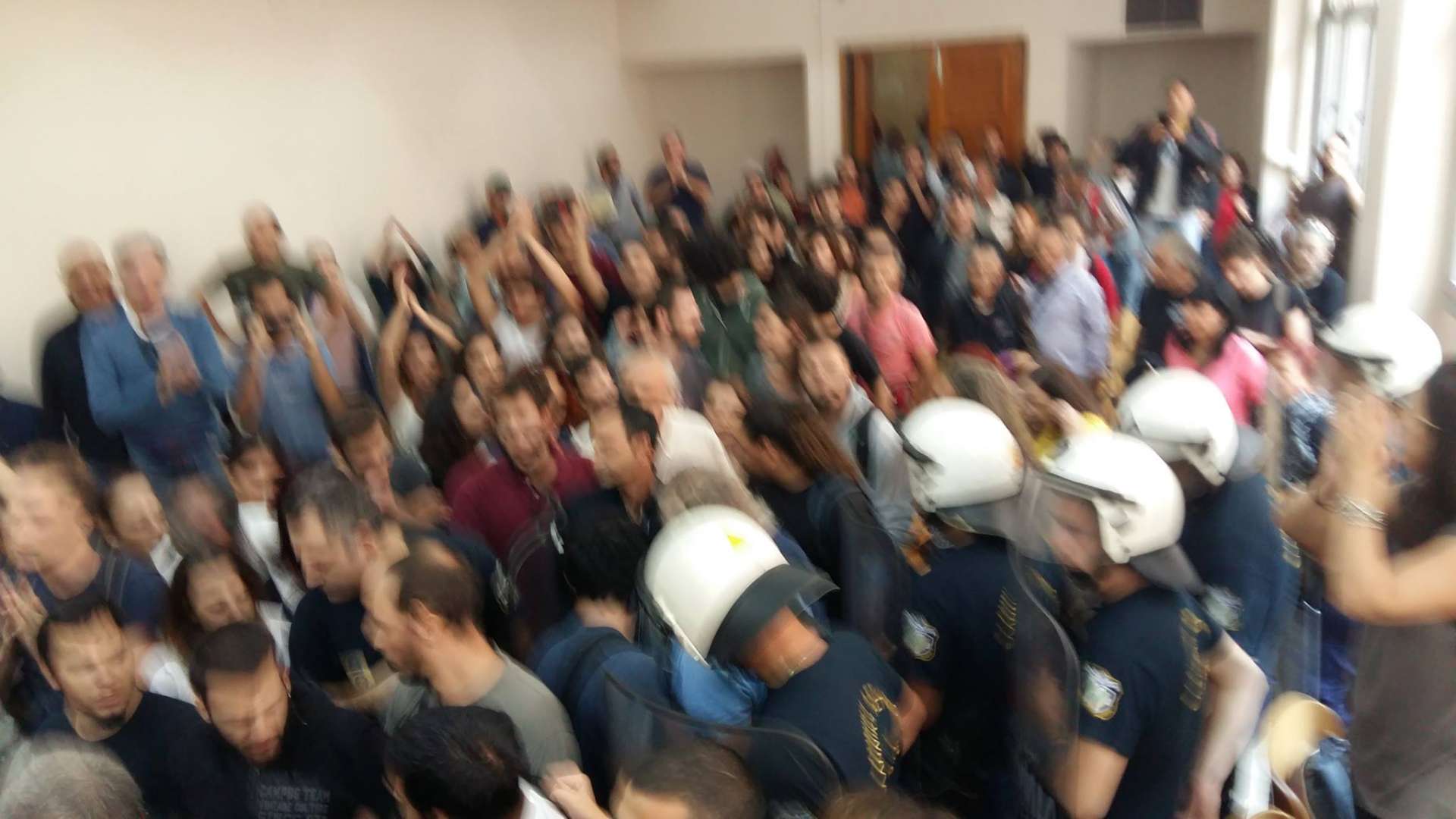 Μεγάλη ένταση επικρατεί αυτή την ώρα μέσα στο δικαστικό μέγαρο Θεσσαλονίκης. Συλλογικότητες που βρίσκονται στο Ειρηνοδικείο για να σταματήσουν τους πλειστηριασμούς έχουν βρει απέναντί τους τα ΜΑΤ.