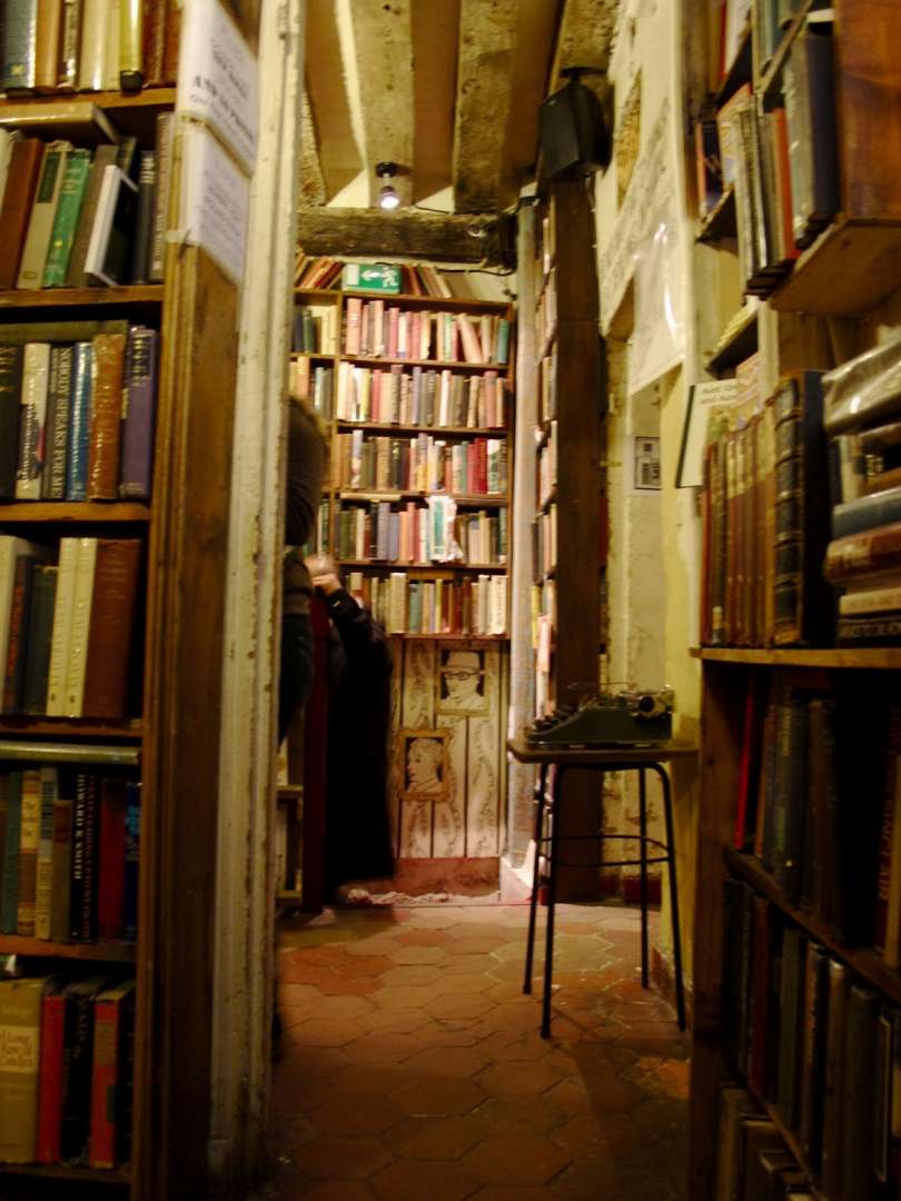 To Shakespeare and Company θυμίζει περισσότερο κατάστημα με κειμήλια: οι βιτρίνες του είναι γεμάτες με δερματόδετα βιβλία και μπαρόκ κάδρα με χρυσές λεπτομέρειες. Ατελείωτες σκάλες ανοίγονται μπροστά σου μόλις περάσεις το κατώφλι που φτάνουν ως το ταβάνι. Παντού παλιά πολύτιμα βιβλία, δαιδαλώδεις χώροι και ξύλινες επενδύσεις, κάνουν αυτό το βιβλιοπωλείο να έχει βγει από παραμύθι.