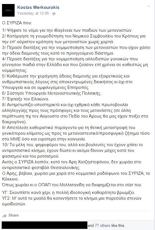 Η δική μου σειρά ήρθε τον Οκτώβριο του 2015 όταν η ιστοσελίδα αναδημοσίευσε κείμενο του Σπύρου Μερκουράκη. Ο πρώην υποψήφιος δήμαρχος και σήμερα δημοτικός σύμβουλος του ΣΥΡΙΖΑ επιχειρούσε ευθέως να με συνδέσει με τον Μελισσανίδη ενώ έθετε εμμέσως πλην σαφώς ζήτημα διακοπής της συνεργασίας μου με ραδιοφωνικό σταθμό ο οποίος μεταδίδει την εκπομπή Infowar.