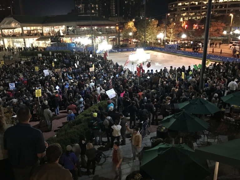 Ενώ ο Ντόναλντ Τραμπ βρισκόταν για πρώτη φορά στο Οβάλ Γραφείο για να συναντήσει τον απερχόμενο πρόεδρο των ΗΠΑ Μπαράκ Ομπάμα, στη λεωφόρο Πενσιλβανία εκατοντάδες άνθρωποι είχαν συγκεντρωθεί για να διαμαρτυρηθούν.