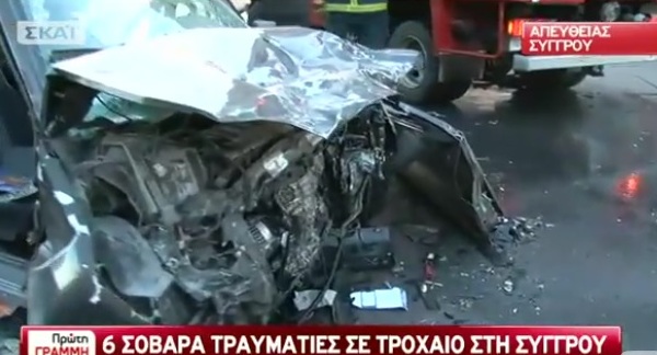 Στη λεωφόρο Συγγρού, πριν λίγη ώρα, στο ύψος του Φιξ έγινε ένα σοβαρό τροχαίο στο οποίο τραυματίστηκαν σοβαρά έξι άτομα. Οι τραυματίες με ασθενοφόρα μεταφέρθηκαν στο νοσοκομείο και ακόμη δεν υπάρχει επίσημη ανακοίνωση για την κατάστασή τους