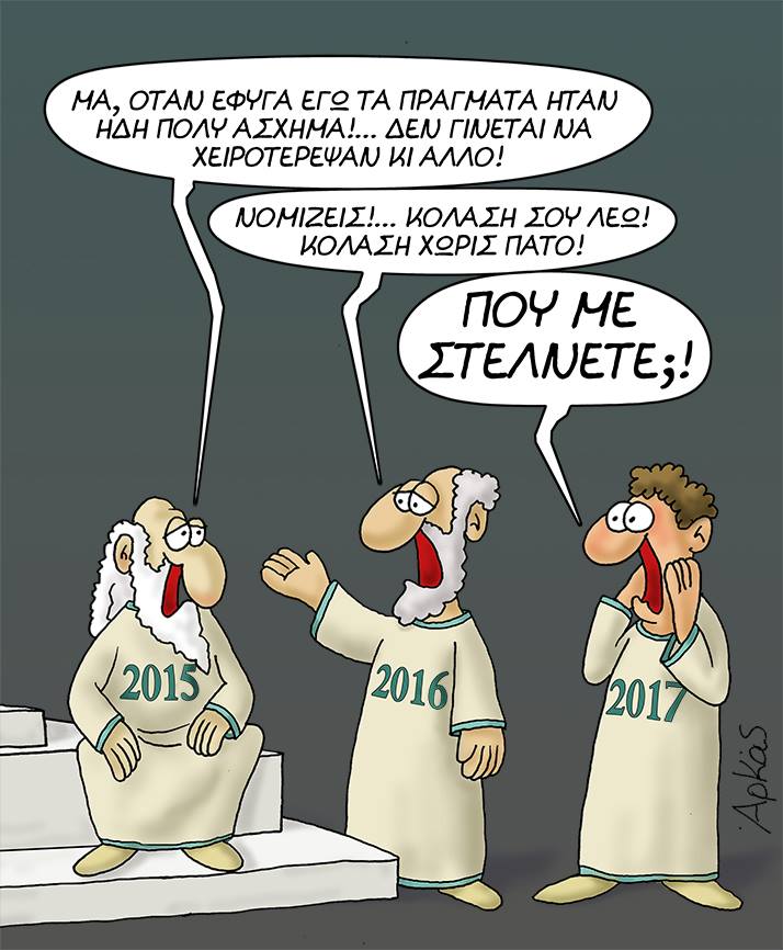 Αυτό ακριβώς μας μεταφέρει ο Αρκάς με το πρωτοχρονιάτικο σκίτσο του!