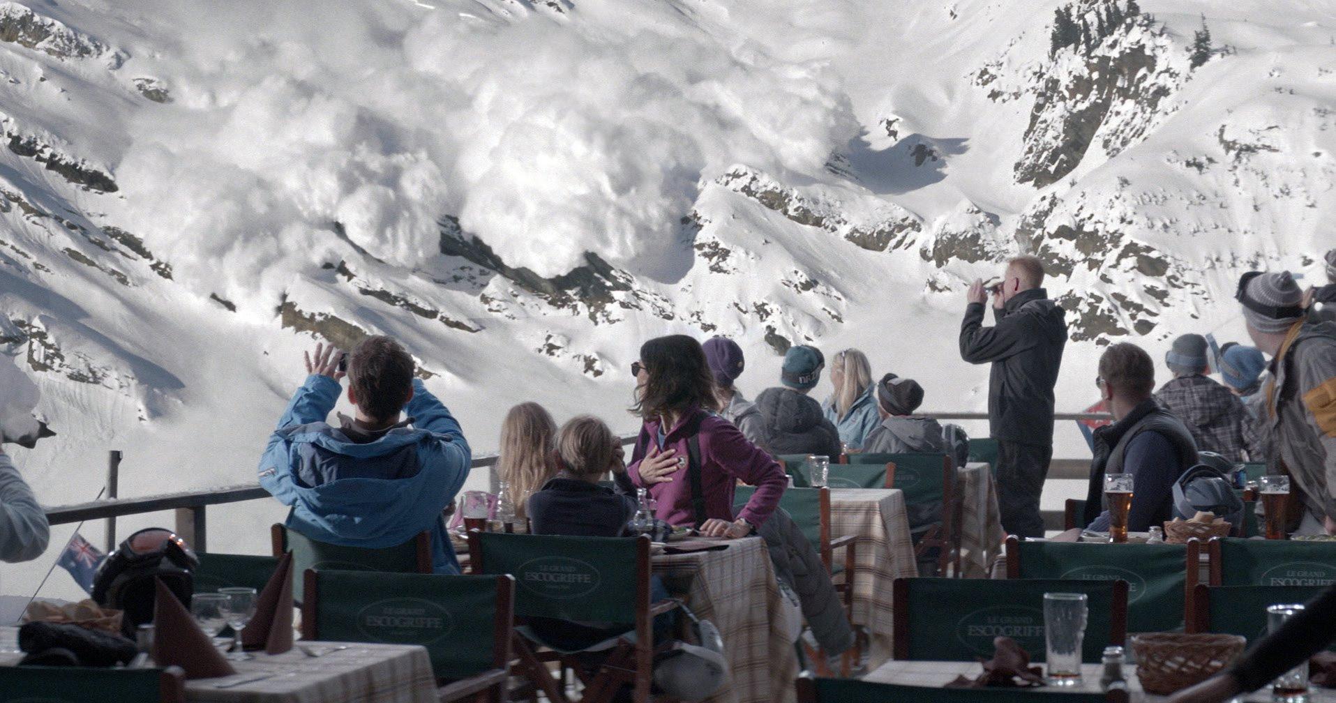 Μια οικογένεια Σουηδών πηγαίνει στις γαλλικές Άλπεις για σκι. Ο ήλιος λάμπει και οι πλαγιές είναι πανέμορφες. Κατά τη διάρκεια ενός γεύματος σε ένα εστιατόριο που κρέμεται από μία πλαγιά μια χιονοστιβάδα φέρνει τα πάνω κάτω. Τα φαγητά πετάγονται προς όλες τις κατευθύνσεις και η Ebba ζητάει τη βοήθεια του Tόμας, καθώς προσπαθεί να προστατεύσει τα παιδιά τους. Αυτός, όμως, τρέχει για να σωθεί.