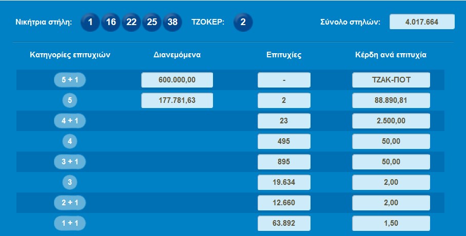 Πρόκειται για δελτία που κατατέθηκαν σε πρακτορεία της Θεσσαλονίκης με τους νικητές να κερδίζουν από 88.890 ευρώ ο καθένας. Σύμφωνα με τη διαλογή του ΟΠΑΠ και τα δύο δελτία δεν ήταν τυχαίας επιλογής.