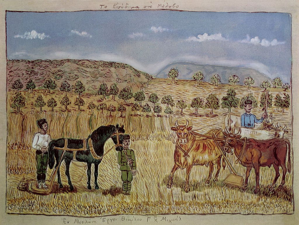 Εν τω μεταξύ, ο ζωγράφος Γιώργος Γουναρόπουλος μιλά με ενθουσιασμό για το έργο του Θεόφιλου στον μυτιληνιό Στρατή Ελευθεριάδη σημαίνοντα τεχνοκριτικό στο Παρίσι με το γαλλικό όνομα Τεριάν. Ο Ελευθεριάδης είναι ο άνθρωπος που επιβάλλει τον Θεόφιλο και θα τον κάνει γνωστό, τόσο στην Ελλάδα, όσο και στο εξωτερικό. Του αγοράζει χρώματα, πινέλα και πανιά και αναθέτει στον πατέρα του να του στέλνει στο Παρίσι όσα έργα ζωγραφίζει. Τότε παρατηρείται και μία στροφή στη θεματολογία του Θεόφιλου. Τα ιστορικά και ηρωικά θέματα δίνουν τη θέση τους στα πιο οικεία, τα καθημερινά, τα κοντινά.
