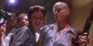 Γεννημένοι Δολοφόνοι (Natural Born Killers) του Oliver Stone, 1994. Σε σενάριο του Quentin Tarantino (που λίγο πριν θα γίνει γνωστός μέσω του Reservoir Dogs) η ταινία θα δεχτεί αρκετή κριτική για τον κυνισμό της, την καλλιτεχνική εκμετάλλευση της βίας και πολλά ακόμα. Πράγματι, μια βίαιη και σκληρή ταινία, οι Γεννημένοι Δολοφόνοι είναι το χρονικό ενός ζευγαριού serial killers το οποίο η κοινωνία παρακολουθεί ηδονικά σχεδόν μέσα από τα μαζικά media. Παράλληλος πρωταγωνιστής είναι ο τηλεοπτικός παραγωγός Robert Downey Jr. που ευφυώς σκέφτεται να μετατρέψει την δολοφονική επέλαση του ζευγαριού ως reality show, ενώ μεγάλο μέρος της ταινίας «αντιγράφει» κριτικά την τηλεοπτική αισθητική.