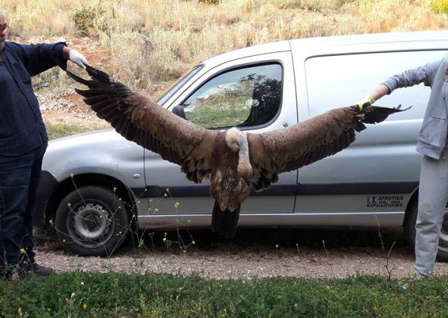 Δηλαδή πιθανώς το πτωματοφάγο και επιβλητικό πτηνό, έφαγε κάποιο ζώο που ήταν δηλητηριασμένο μιας και δεν φέρει τραύματα στον κορμό ή τα φτερά του που σε άνοιγμα ξεπερνούν κατά πολύ τα δυο μέτρα.