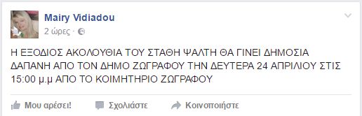 Αυτό ανήρτησε στο Facebook η εκπρόσωπος της οικογένειας του Στάθη Ψάλτη, Μαίρη Βιντιάδου.