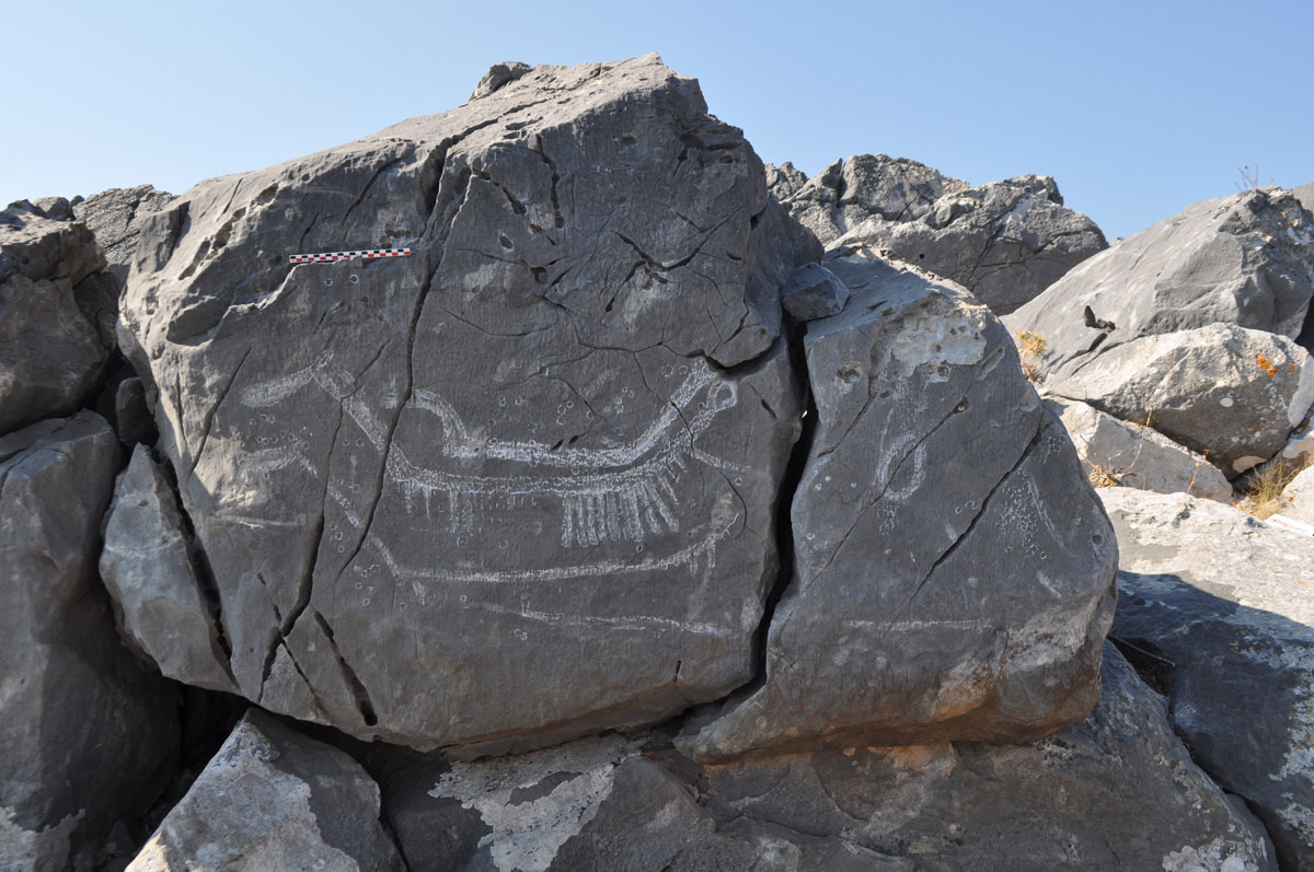 Στη Χαλανδριανή Σύρου, στη θέση Καστρί, η αρχαιολόγος Μαρίζα Μαρθάρη συνέχισε και πέρσι την αναζήτηση βραχογραφιών μέσα στον προϊστορικό οικισμό στην κορυφή του λόφου και στα μονοπάτια που οδηγούν σε αυτόν.