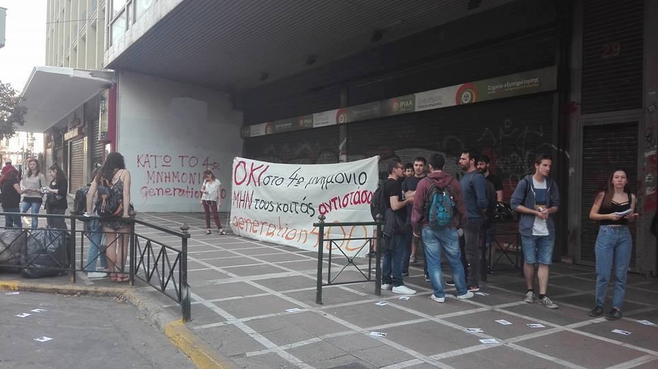 Χθες (9/5), με αφορμή την επικείμενη ψήφιση του Μνημονίου και τα μέτρα-φωτιά σε εργασιακά, πραγματοποίησε παρέμβαση στο Υπ.Οικονομικών και στο Υπ.Εργασίας, καθώς και σε κεντρικά σημεία πέριξ της πλατείας Συντάγματος
