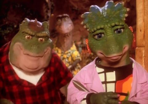 Παράλληλα, πολλές παιδικές σειρές της τηλεόρασης θα αναφερθούν στους δεινόσαυρους: Είτε αρματωμένοι με όπλα (Dino Riders), είτε ως ρομπότ (στους Transformers), είτε μαζί με ανθρώπους στους Flinstones, είτε ακόμη και ως σαπουνόπερα μιας τυπικής μικροαστικής οικογένειας (η πρωτότυπη σειρά Dinosaurs (1991-1994) θα συνθέσουν μια επέλαση η οποία θα συνεχιστεί και με ακριβότερες παραγωγές, άλλοτε πετυχημένες (Dinosaur, 2000) και άλλοτε λιγότερο πετυχημένες, όπως ο πρόσφατος Καλόσαυρος (Good Dinosaur, 2015) όπου το βασικό κλειδί της πλοκής είναι πως ο μετεωρίτης πέρασε ξυστά και οι δεινόσαυροι αναπτύχθηκαν περίπου όπως οι πρωτόγονες ανθρώπινες κοινότητες (ευρηματικό, όμως μέτρια εκτελεσμένο).