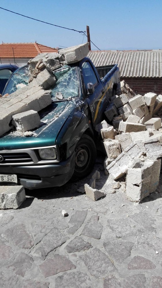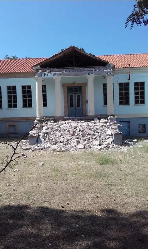 Το Πλωμάρι έχει επίσης πληγεί από τον σεισμό, με υλικές ζημιές να έχουν προκληθεί σε παλιά κτίρια, καθώς και σε σχολεία της περιοχής.