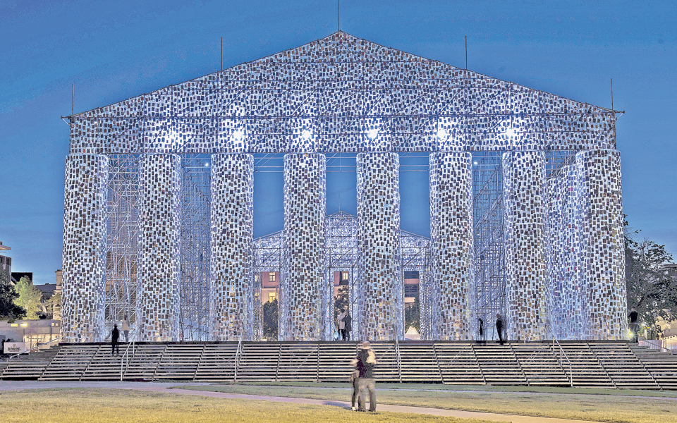 Είναι ο «Παρθενώνας των βιβλίων», ένα έργο της αργεντινής Μάρτα Μινουχίν που τοποθετήθηκε σε μία από τις κεντρικές πλατείες του Κάσελ, της πόλης που εδώ και πάνω από μισό αιώνα φιλοξενεί κάθε πέντε χρόνια την Documenta, μια από τις πιο σημαντικές διεθνείς εκθέσεις τέχνης.