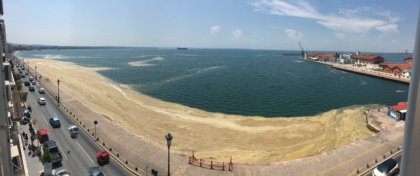 Η εικόνα που παρουσιάζουν τα νερά του Θερμαϊκού εδώ και αρκετές ημέρες είναι θλιβερή.