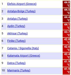 Σας επισυνάπτω 2 φωτογραφίες, η μία με τις μέγιστες σήμερα στην Ελλάδα και η άλλη με τις μέγιστες σήμερα στην Ευρώπη.