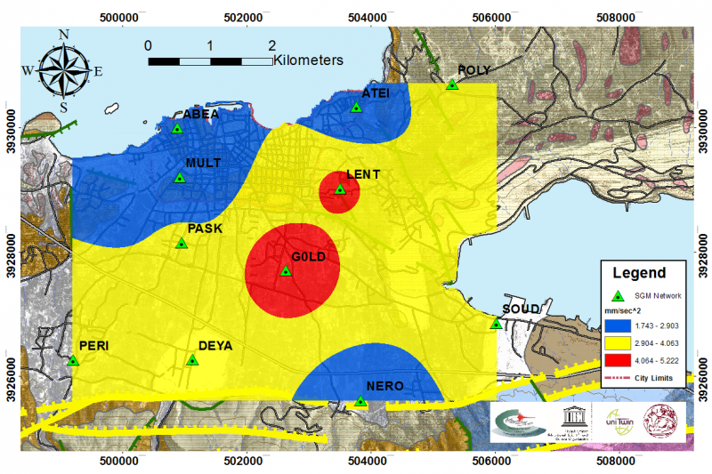 H κατανομή της εδαφικής κίνησης προέρχεται από τους σταθμούς καταγραφής τις Ισχυρής Εδαφικής κίνησης που λειτουργεί εντός της πόλης των Χανιών το Εργαστήριο Γεωφυσικής και Σεισμολογίας και η Εδρα UNESCO για την μελέτη της Φυσικής της Γης και την Μείωση των Γεωκαταστροφών του Τεχνολογικού Εκπαιδευτικού Ιδρύματος Κρήτης.