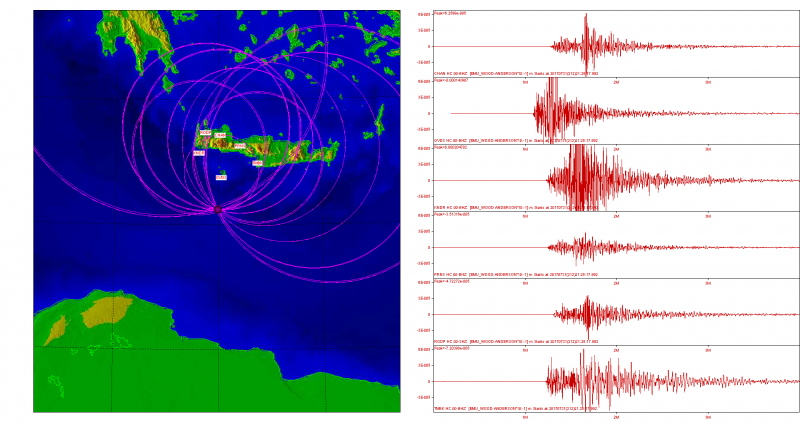Επιπλέον, υπήρξαν καταγραφές της σεισμικής κίνησης απο τους Σεισμολογικούς σταθμούς του Εργαστηρίου Γεωφυσικής και Σεισμολογίας και η Εδρα UNESCO για την μελέτη της Φυσικής της Γης και την Μείωση των Γεωκαταστροφών του Τεχνολογικού Εκπαιδευτικού Ιδρύματος Κρήτης το οποίο αποτελεί μέλος της Εθνικής Υποδομής HELPOS.