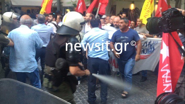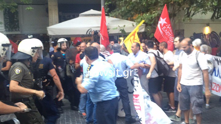 Η συγκέντρωση, όπου παραβρέθηκε και ο Παναγιώτης Λαφαζάνης, πραγματοποιήθηκε λίγο πριν τις 19:00, με την παρουσία μερικών δεκάδων μελών και φίλων της ΛΑΕ. Λίγο μετά σημειώθηκαν επεισόδια, με τις δυνάμεις των ΜΑΤ να ρίχουν χημικά και να χτυπούν διαδηλωτές. Η αστυνομία είχε απαγορεύσει όλες τις διαδηλώσεις για σήμερα.