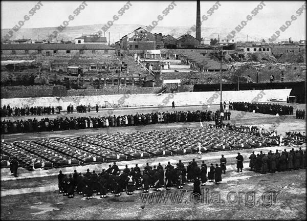 4 Μαρτίου 1955. Στον Πειραιά, στην Ακτή Βασιλειάδη, τα φέρετρα με τις σορούς των Ελλήνων στρατιωτών, που μεταφέρθηκαν από την Κορέα.