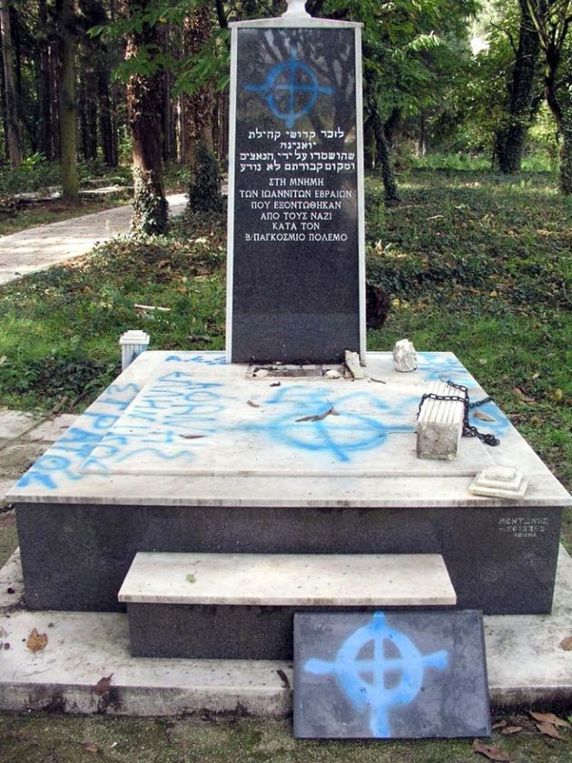 Οι βανδαλισμοί άρχισαν το 2002 και επαναλαμβάνονταν χρόνο με τον χρόνο έως το 2009, σημείωσε ο κ. Ράπτης και περιέγραψε σπασμένα ταφικά μνημεία, μεταξύ των οποίων και το μνημείο των Γιαννιωτοεβραίων θυμάτων του Ολοκαυτώματος, «το οποίο βεβήλωσαν με κέλτικους σταυρούς, που είναι το σήμα της Χ.Α.».