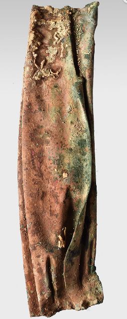 1) Χάλκινο τμήμα με πτυχώσεις ενδύματος, προερχόμενο από άγαλμα.