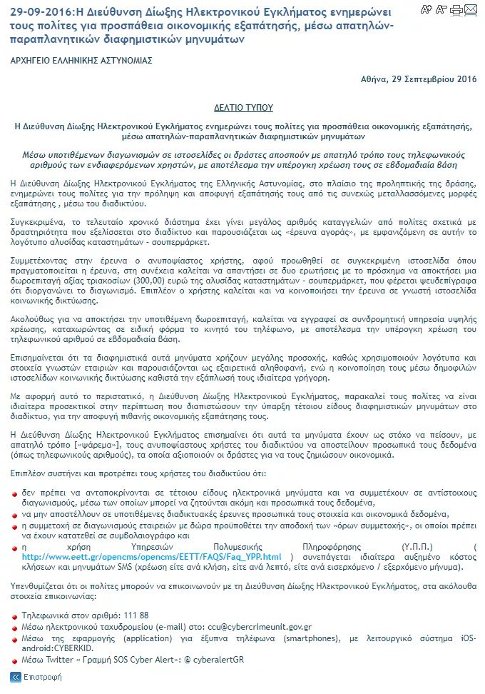 Η αστυνομία έχει εκδώσει σχετική ανακοίνωση για το φαινόμενο των ψεύτικων διαγωνισμών.