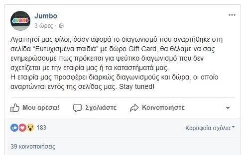 Μετά από λίγε ώρες ο «διαγωνισμός» διαγράφηκε, αλλά οι επιτήδειοι δεν σταμάτησαν την προσπάθεια εξαπάτησης και τον δημοσίευσαν ξανά σε διαφορετική σελίδα του facebook.