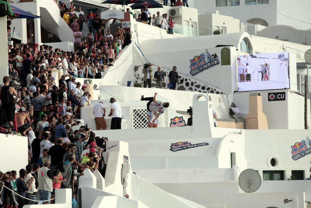 Αξίζει να σημειωθεί ότι το 2015 η Σαντορίνη απέκτησε τη δική της Freerunning σχολή. Πάνω από 600 αθλητές από 55 χώρες έχουν πάρει μέχρι στιγμής μέρος στο Red Bull Art of Motion της Σαντορίνης.